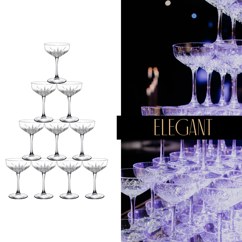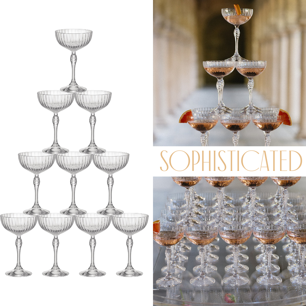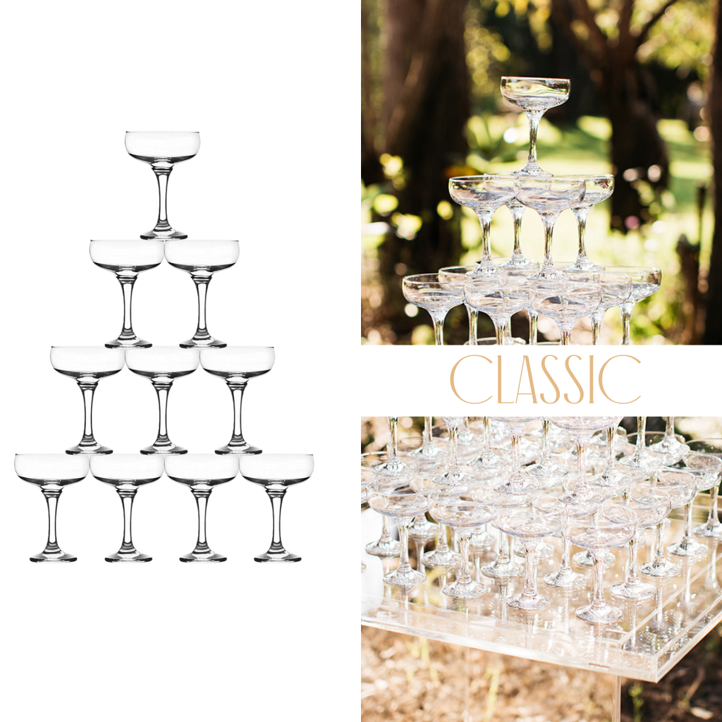 Our Classic Coupe towers are a perfect addition to add sophistication and class to any event.